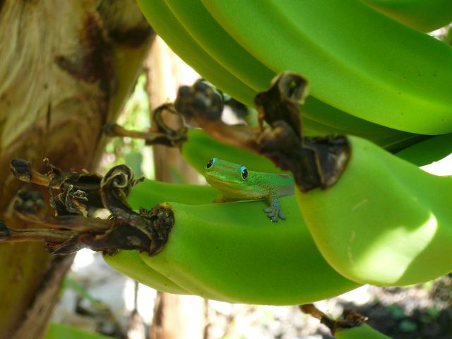 庭のバナナとゲッコー忙しく時間に追われていると、やり過ごしてしまうようなことにも、ここではなぜか、気づくことができるのです。