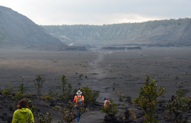 リトリートではこの火口の見学だけでなく、今では冷えて固まった古い火口に降りてトレイルを歩きます。